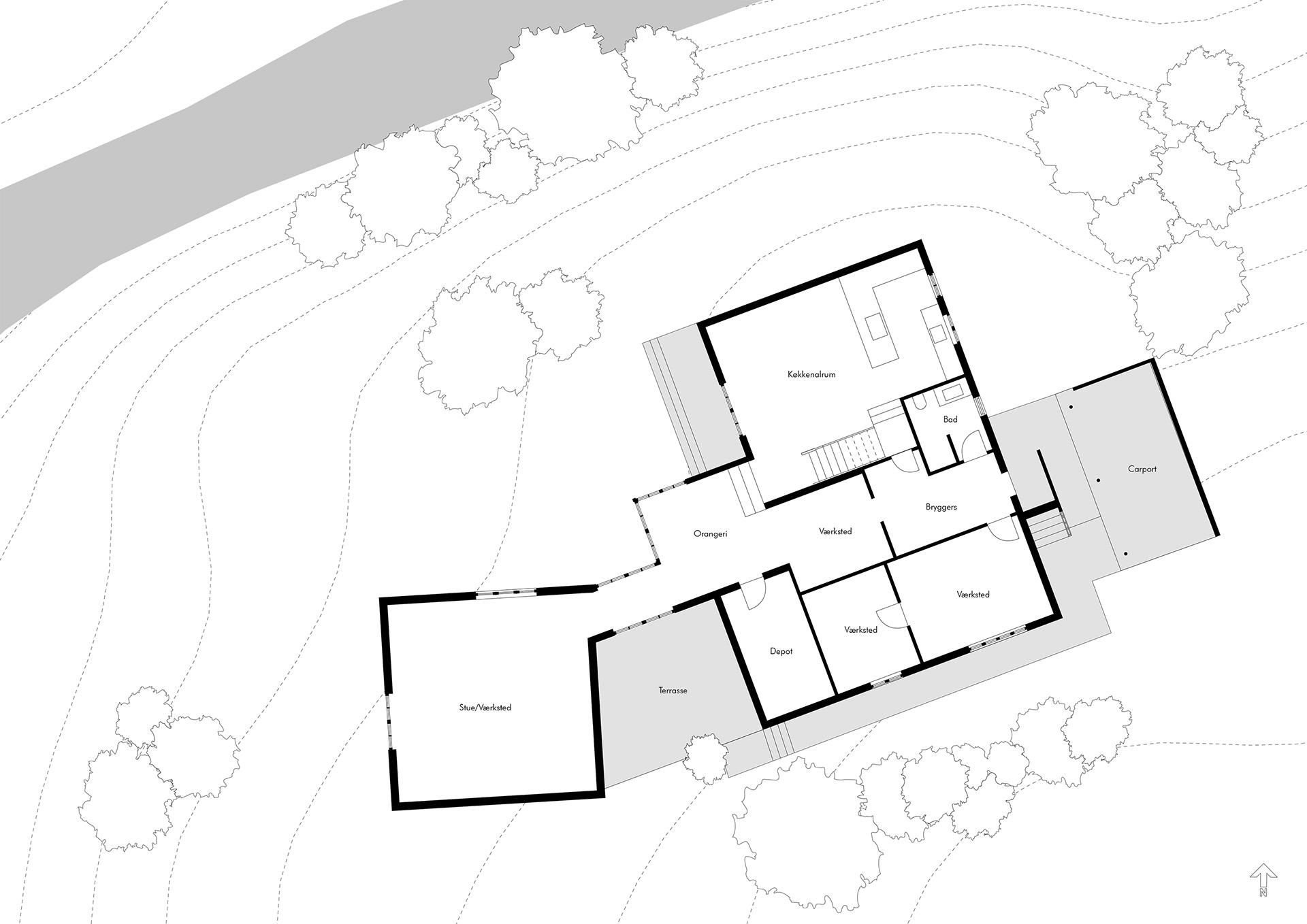 Denne ombygning, af en villa beliggende ved Thorsø i Virklund, Silkeborg, har taget afsæt i en muremestervilla fra 1950érne der gennem årene er knopskudt med forskellige tilbygninger. I et tæt samarbejde med bygherre har opgaven været at forene de forskellige tilbygninger i et ensartet formsprog og samtidige skabe en polyvalent bolig der både skal kunne fungere som kursussted og hjem for bygherre. Boligen er omkranset af naturen i Virklund, hvor vandet med Thorsø og et åløb gennem haven har spillet en vigtig rolle i omdannelsen af villaen. Ved at lytte til bygherres ønsker til materialer og udtryk, er boligen blevet strammet op, og givet et ensartet udtryk udadtil samtidig med at boligens indre for et sammenhængende udtryk med naturmaterialer i blandt andet egetræ. Ombygningen bliver udført i faser, og første fase er i gang, oktober 2020.